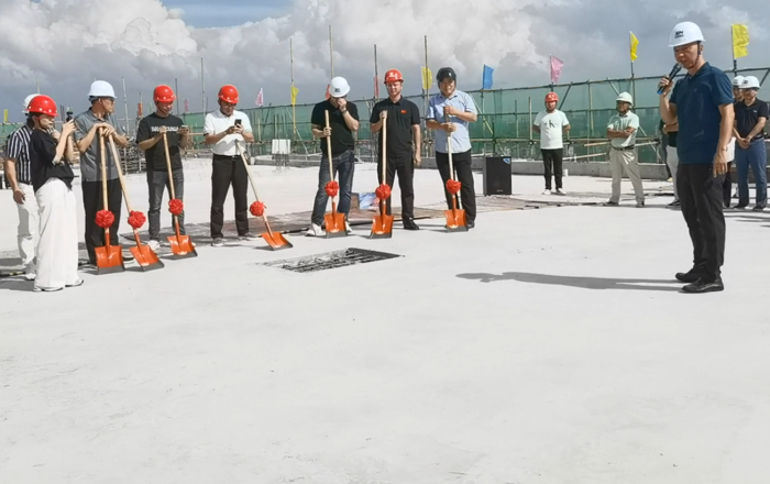 2025年10月18日下午,位于海口市狮子岭工业园的海口膜力创新工厂(AB#)建筑屋顶上,阳光灿烂,宾客纷至,结构封顶仪式隆重举行! 项目建设方海南赛诺实业有限公司董事长邢青涛先生致词,工程总监曾德骅先生主持结构封顶仪式。 海口膜力创新工厂(AB#)建筑的结构设计由海南周华结构完成,周华博士和韩琴工程师应邀参加结构封顶仪式。 海口膜力创新工厂(AB#)建筑地上6层,每层层高均为8m,总建筑面积约2万平米,楼面使用活荷载大,是海南第一栋也是全国少见的同类工业建筑。采用“混凝土框架+剪力墙”结构,仅在楼梯和电梯井筒以及外墙处布置剪力墙,最大限度保障了室内的使用空间;采用预应力高强混凝土管桩,通过调整桩长和详细的沉降计算控制二种不同持力层对结构的不利影响。建筑的结构设计得到了各方的认可。 感恩海南赛诺实业对海南周华结构的信任与委托!